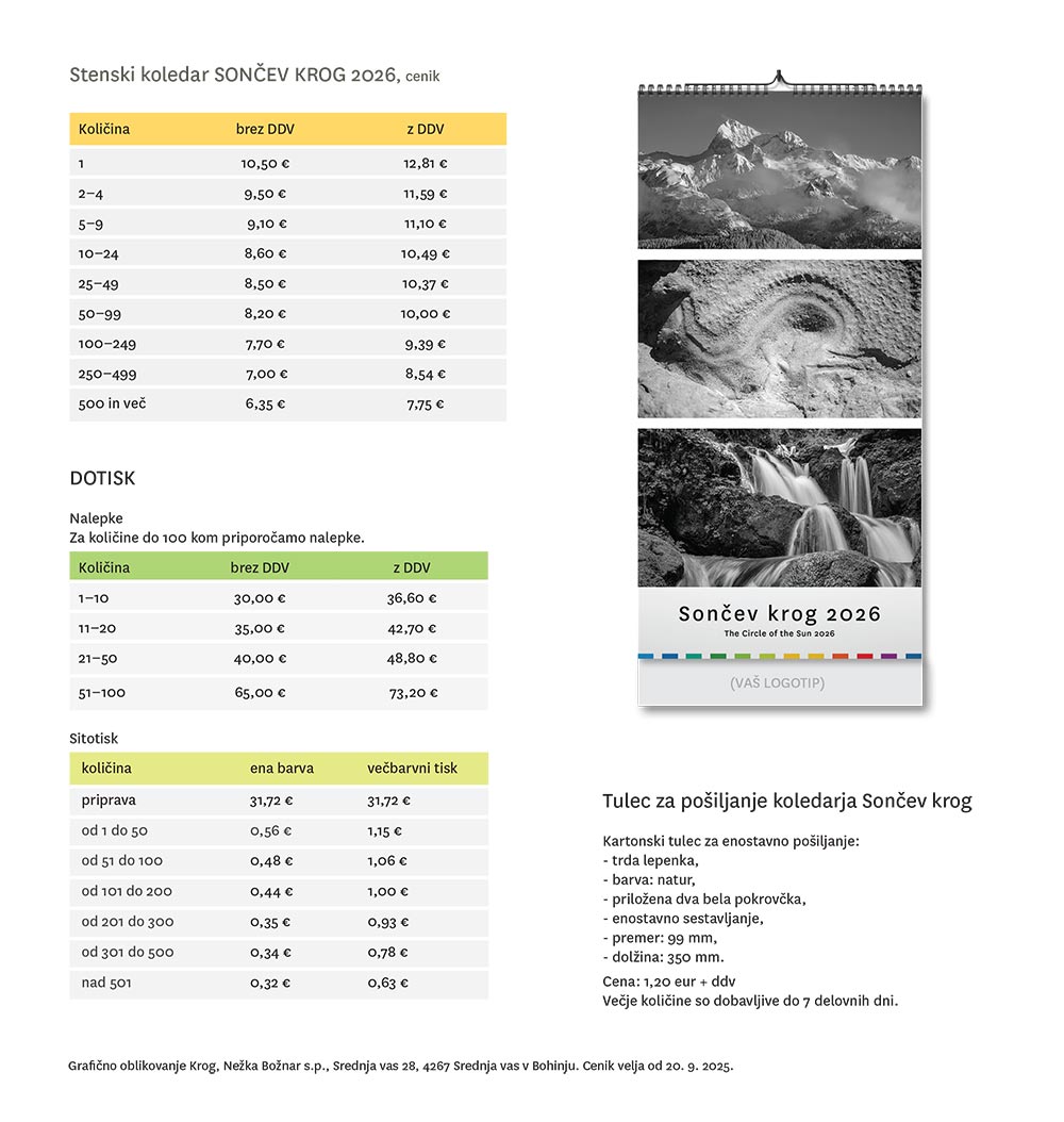 Sončev krog vas zopet pozdravlja s koledarjem o Julijskih alpah skozi objektive treh fotografov, o iskanju samega sebe, globokem doživljanju narave, oddaljenih in bližnjih pogledih ... odlično osebno ali poslovno novoletno darilo.